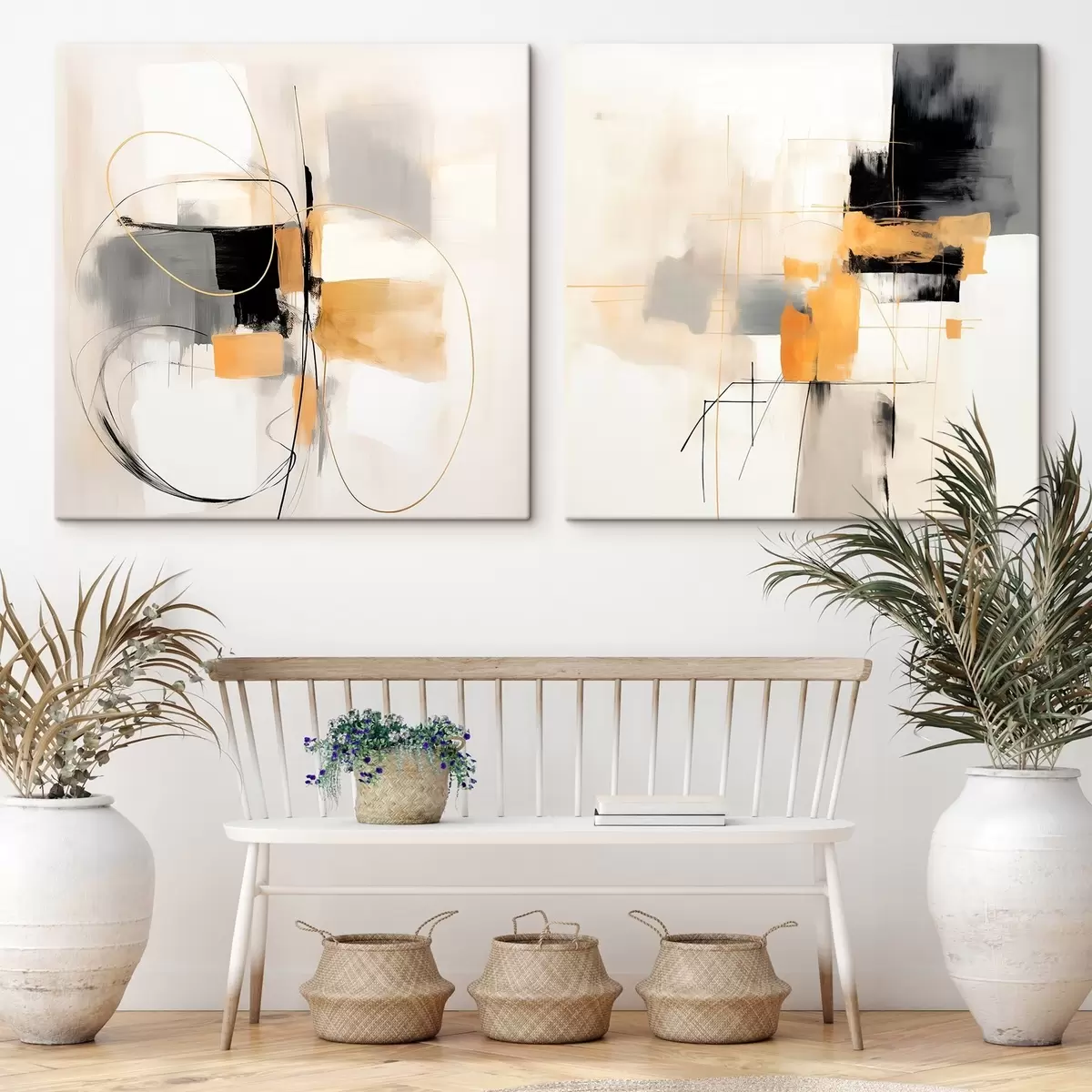 Glezna Abstrakta ģeometrija, okers, pelēks un melns Nr m00899
