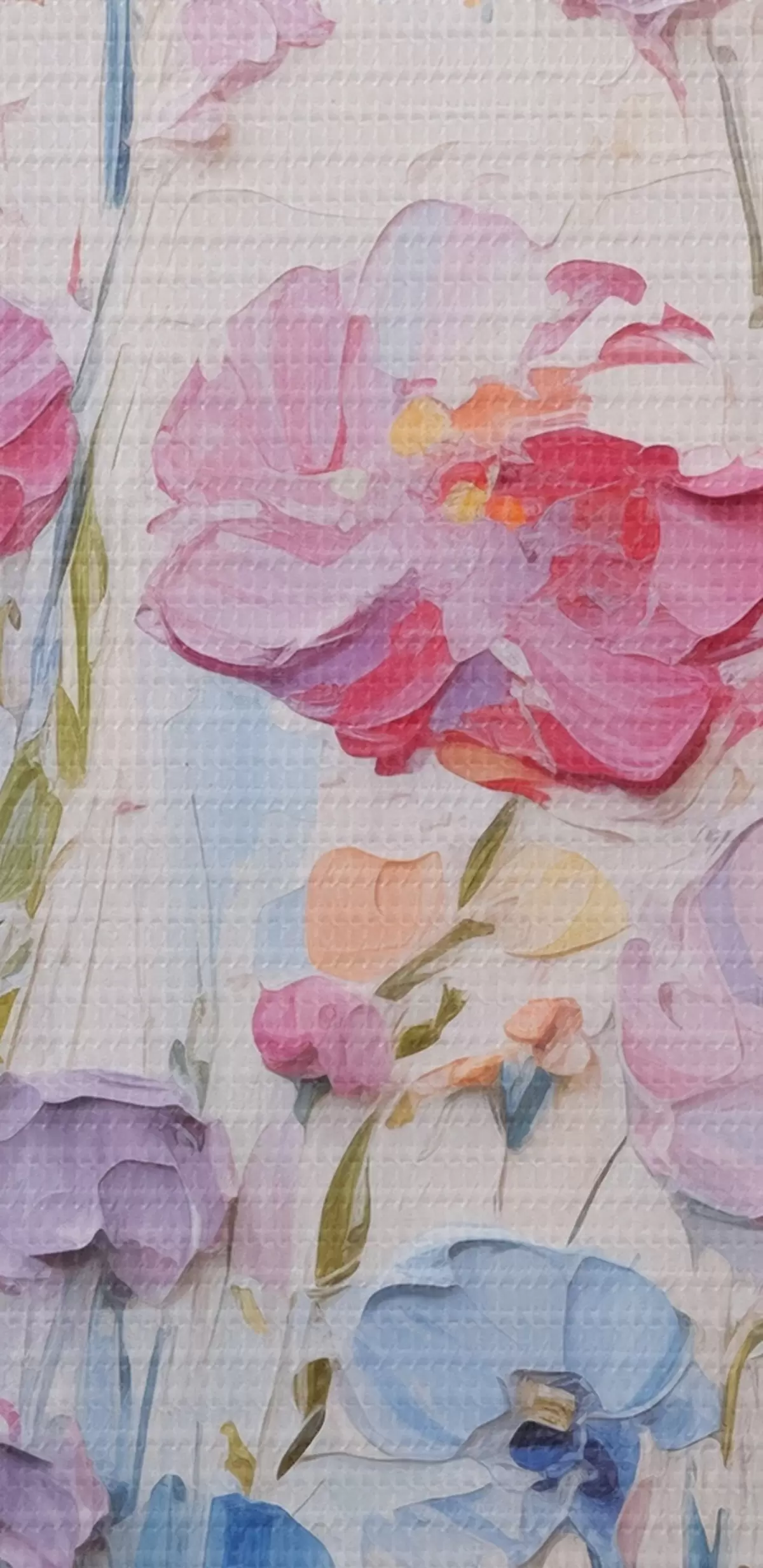 Smalkais diegu pinums uz šī audekla atgādina profesionālu mākslinieku audeklu virsmu.