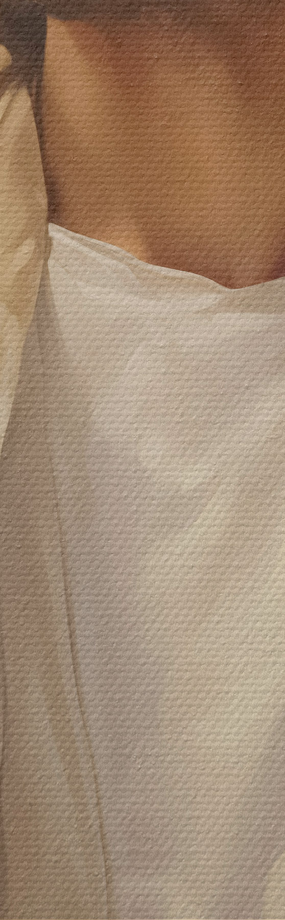 Smalkais diegu pinums uz šī audekla atgādina profesionālu mākslinieku audeklu virsmu.