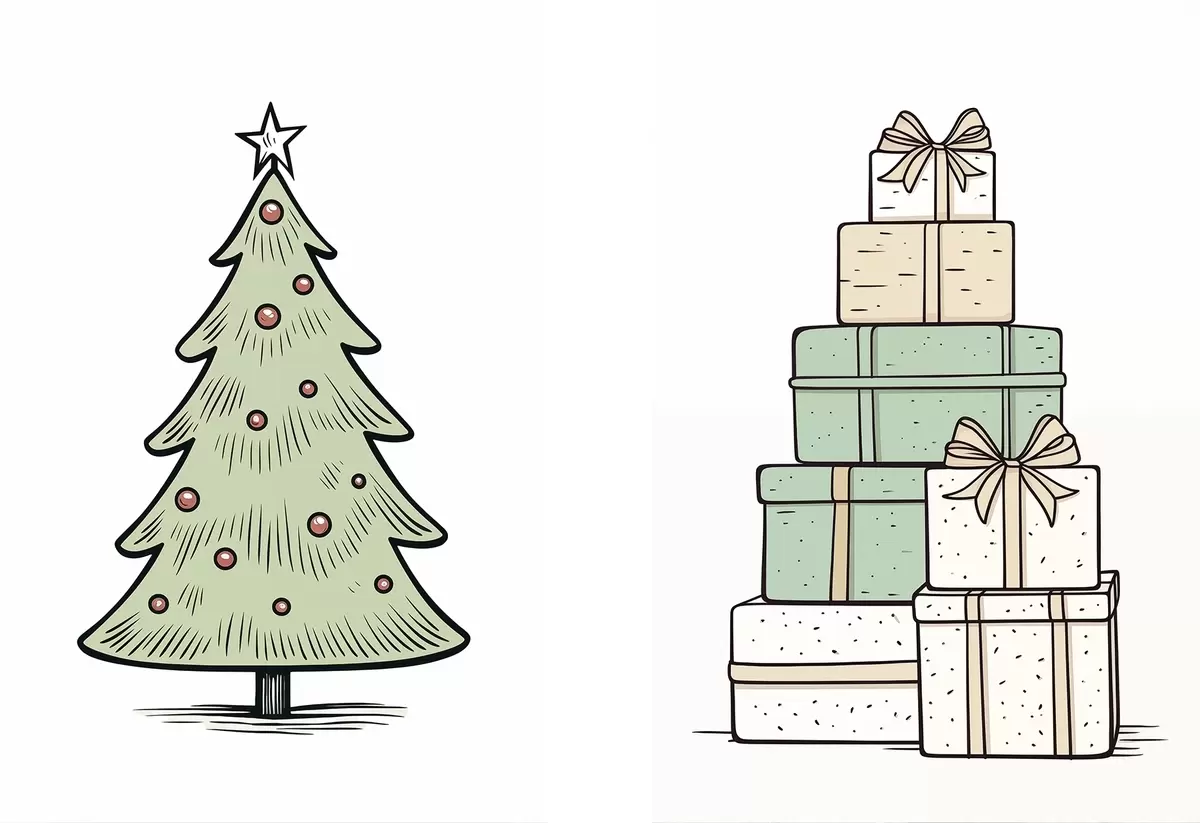 Glezna Ziemassvētku eglīte un dāvanas Nr m00953