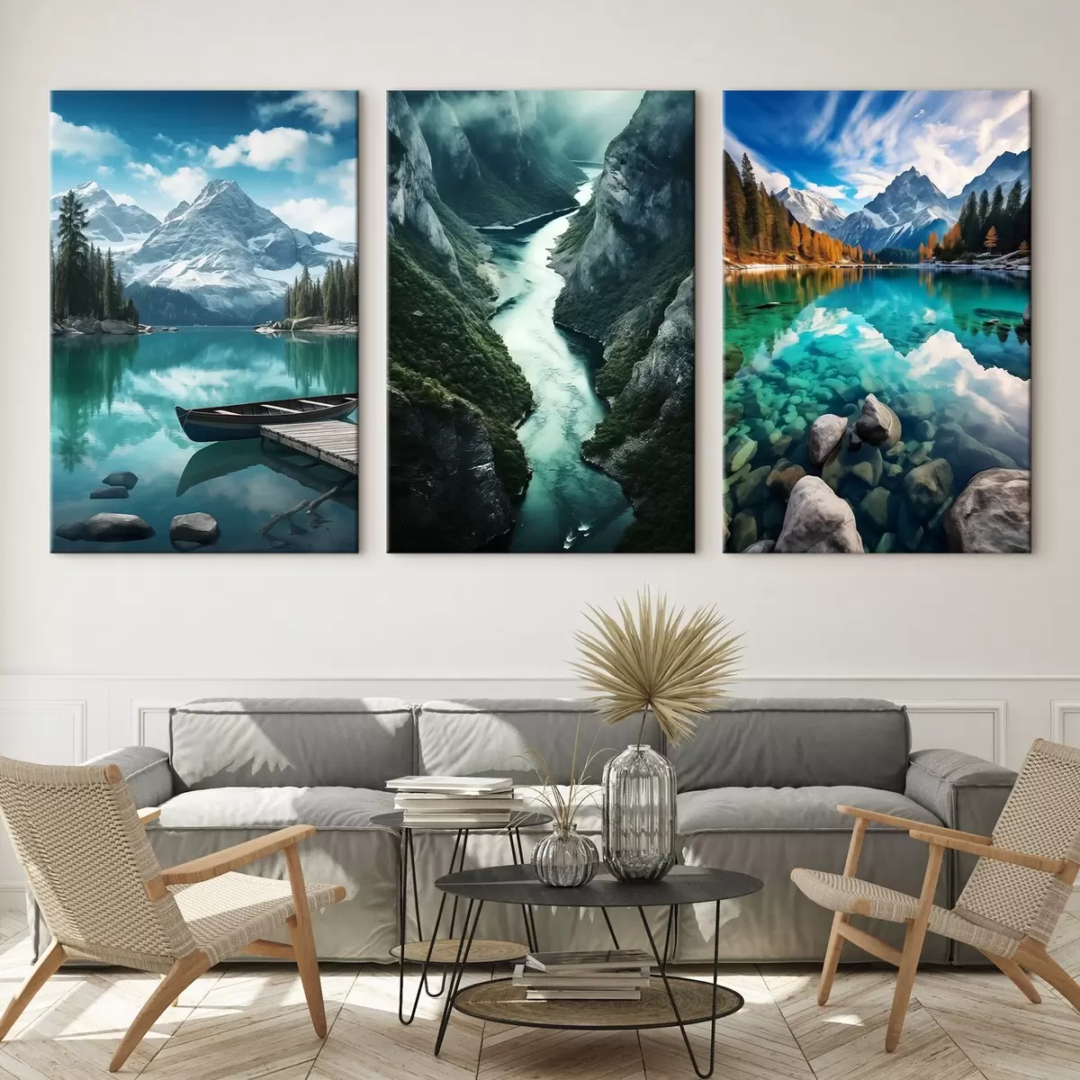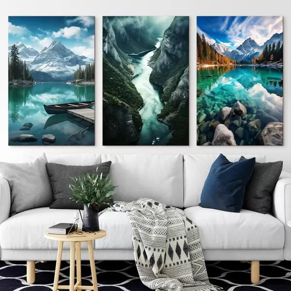 Glezna Alpu ezeri un fjordu skati vēsās zilozaļās toņos Nr m00961