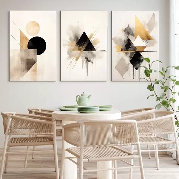 Glezna Ģeometriski trīsstūri ar tintes šļakatām, melnā un okera krāsā Nr m00963