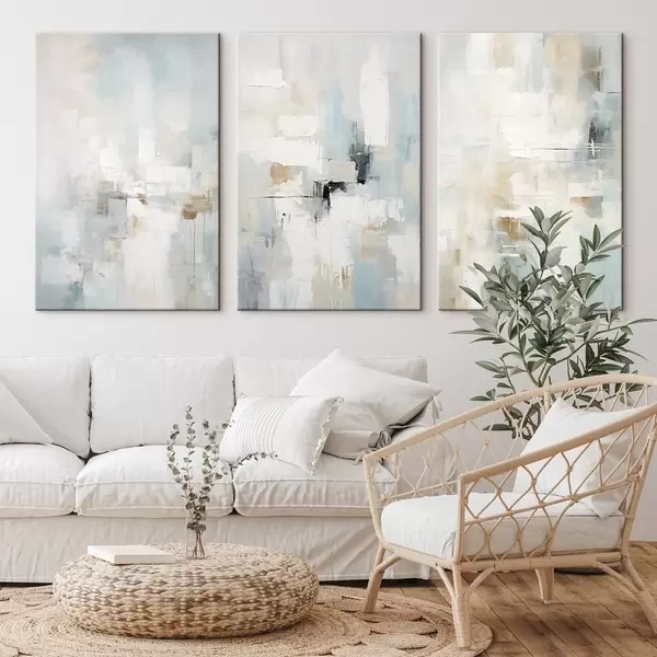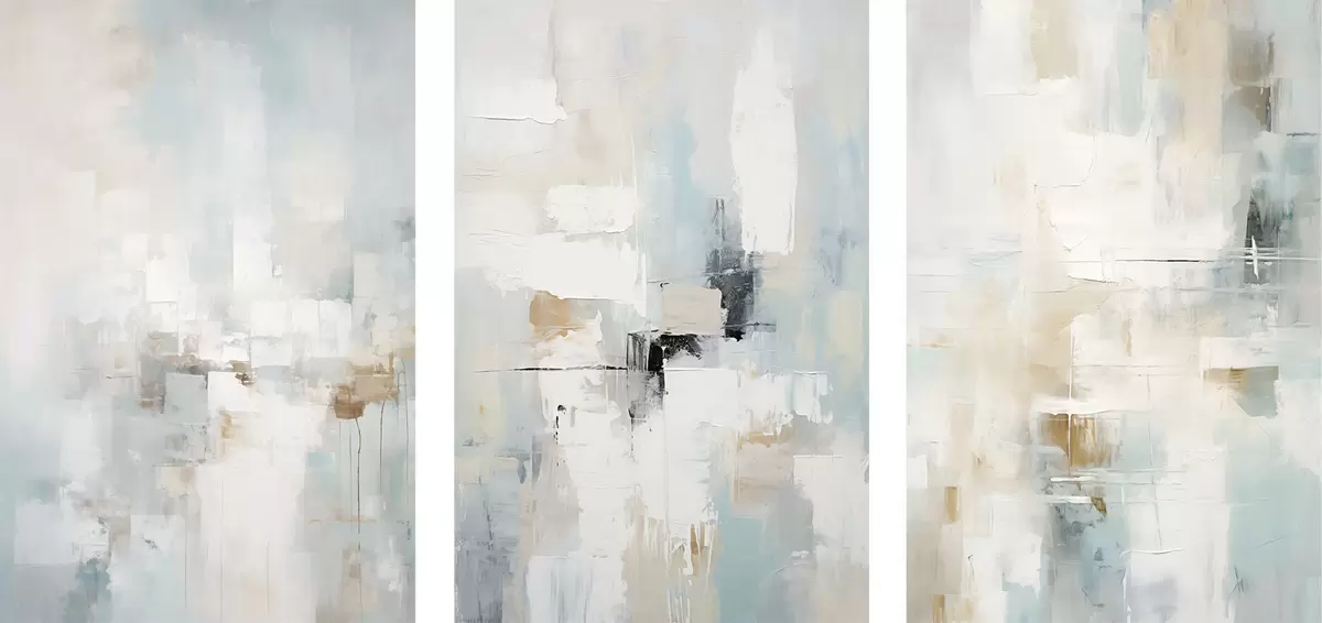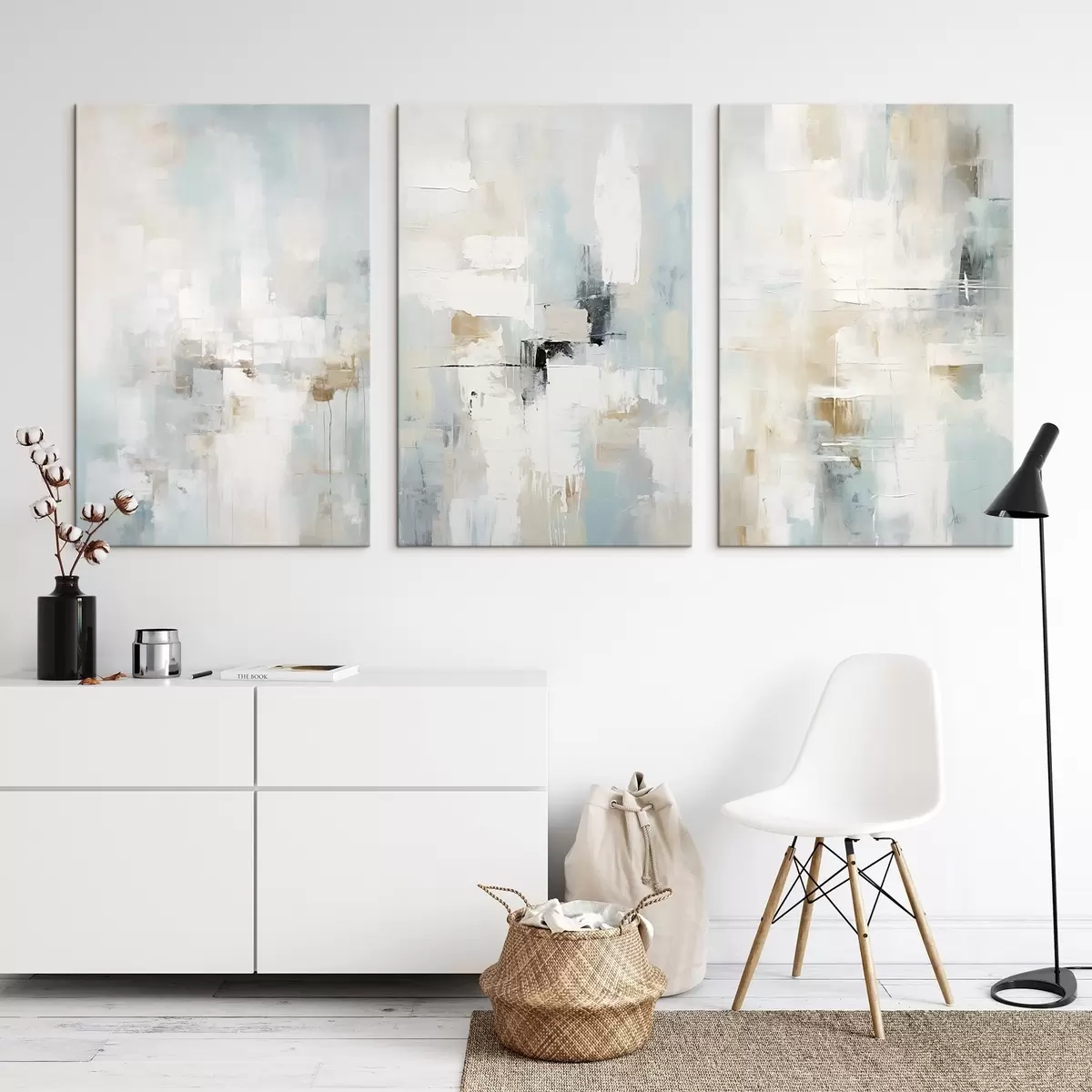 Glezna Gaisīga abstrakta krāsu palete: balta, smilškrāsa un gaiši zila Nr m00966