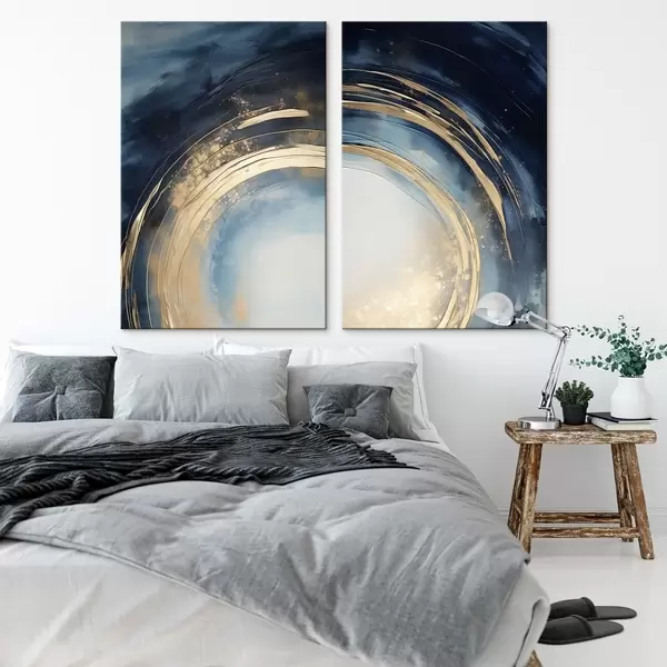 Glezna Pusnakts zils apļveida slīpums ar metāliskiem lokiem Nr m00969