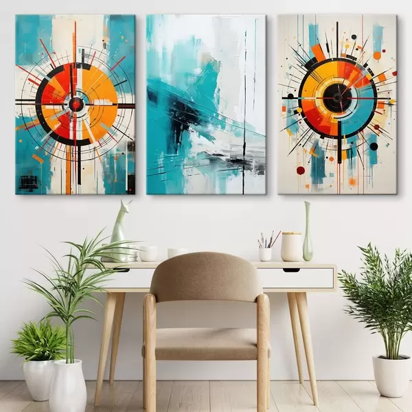 Glezna Radialais abstrakts ar zaļgani zilganiem un oranžiem izlaušanos Nr m00973