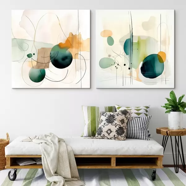 Glezna Divdaļīga abstraktā kompozīcija ar maigām krāsu plankumiem Nr m00985