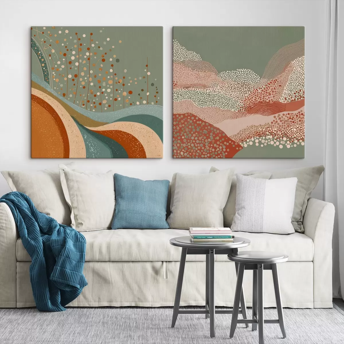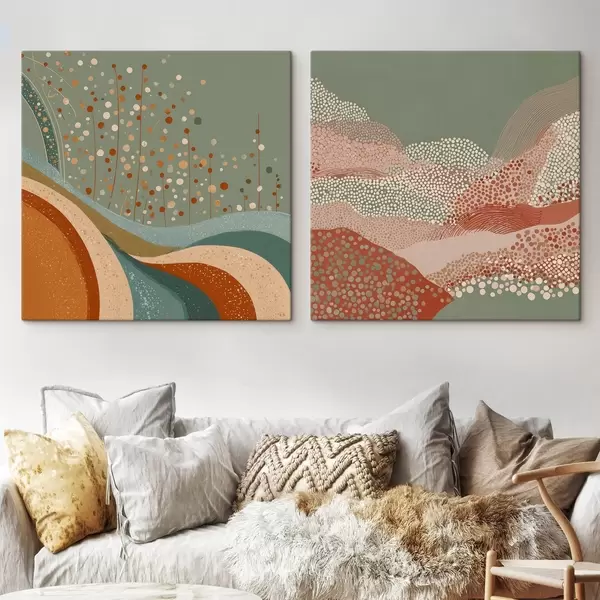 Glezna Divdaļīgs abstrakts ainavas attēls ar punktveida un viļņveida elementiem Nr m00987