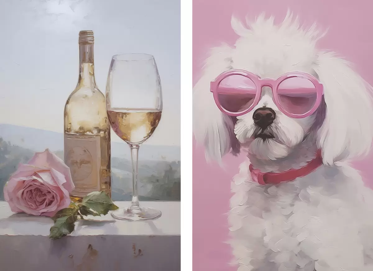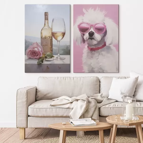 Glezna Pudele un glāze vīna un pudelis ar brillēm, imitācijas glezna Nr m01021