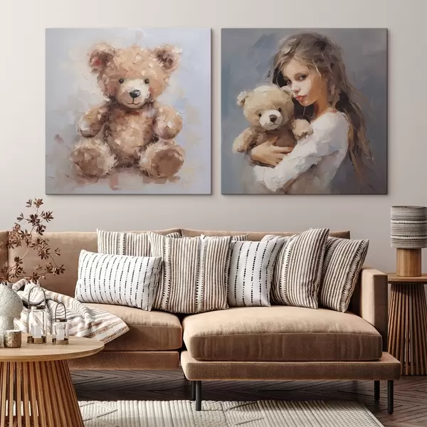 Glezna Meitene ar rotaļlietu lāci, imitācijas glezna Nr m01029