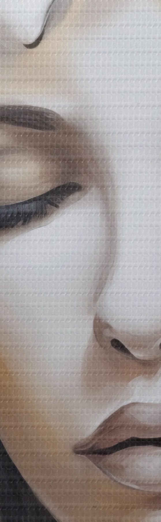Smalkais diegu pinums uz šī audekla atgādina profesionālu mākslinieku audeklu virsmu.