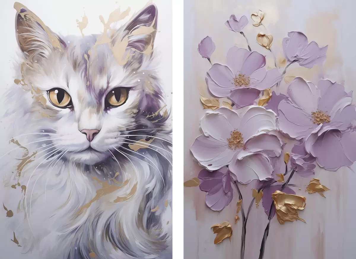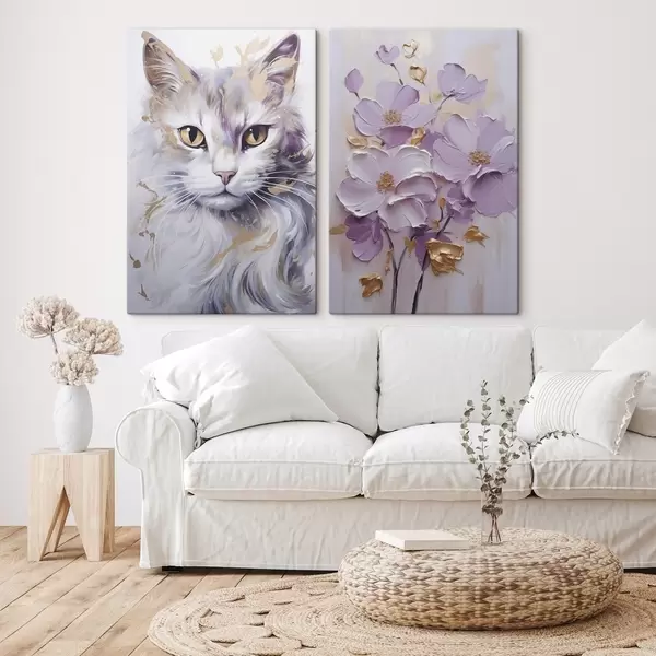 Glezna Abstraktas puķes un kaķis Nr m01056