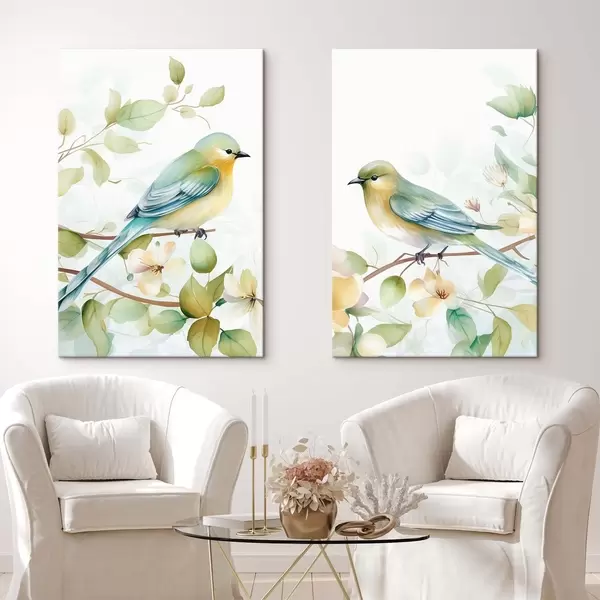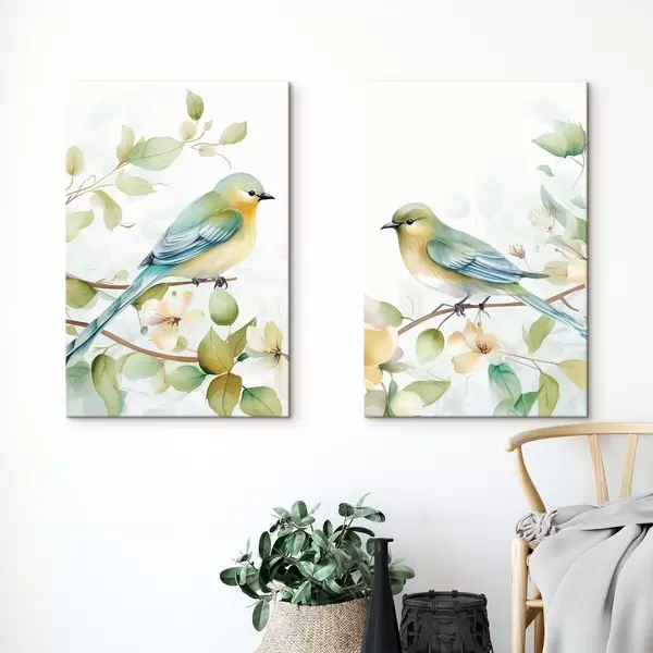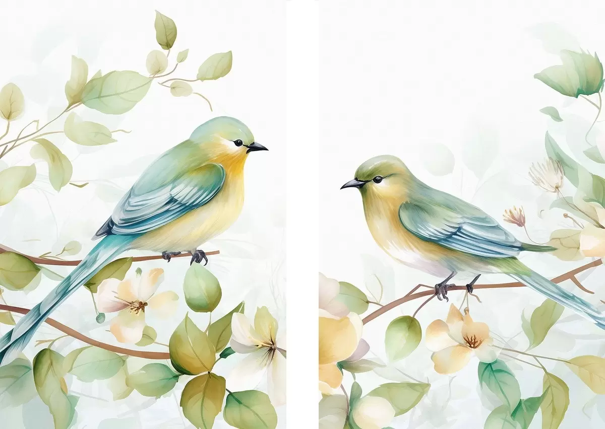 Glezna Divas zvirbuļveidīgās putniņas uz jasmīna zariem m01069