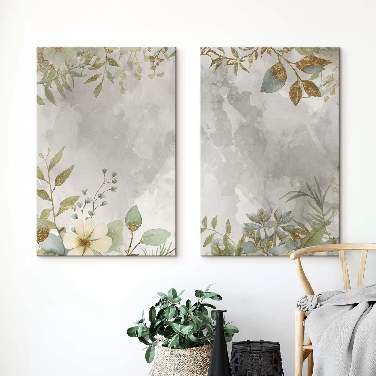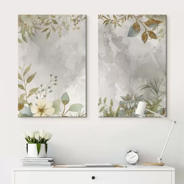 Glezna Delikāti augi uz gaiši pelēka fona m01070