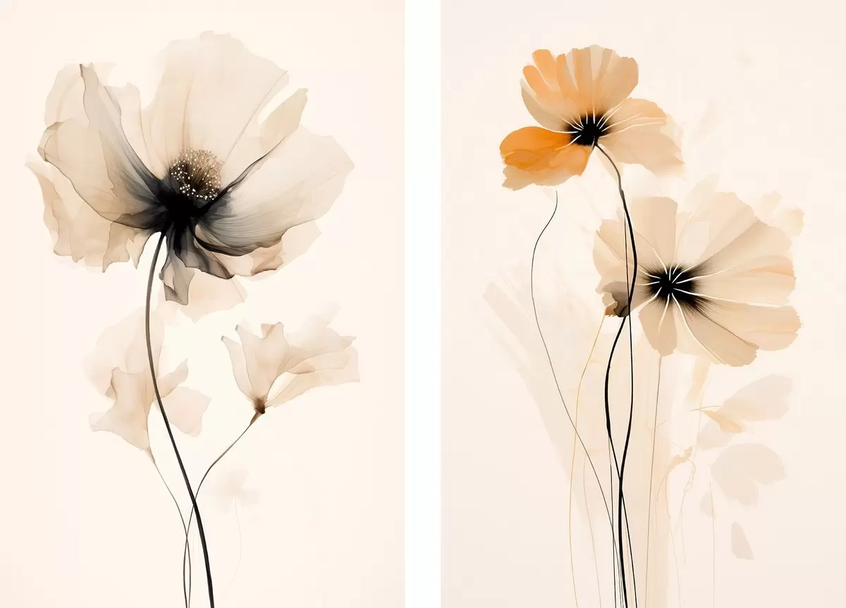 Glezna Gaišas akvareļu magones ar maigām ēnām un gaisīgu telpu Nr m01091