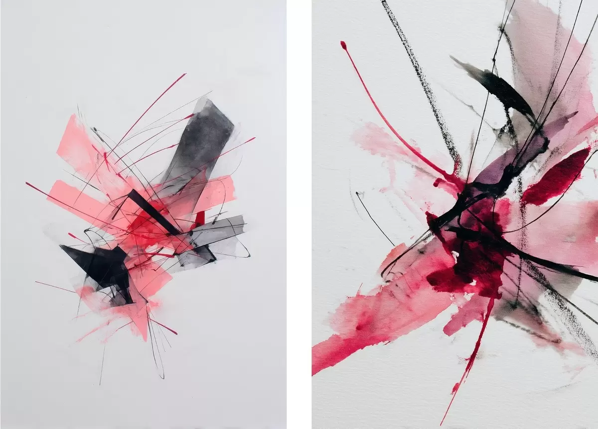 Glezna Mūsdienu abstraktā māksla ar dinamiskiem triepieniem un daļēji caurspīdīgiem krāsu slāņiem Nr m01094