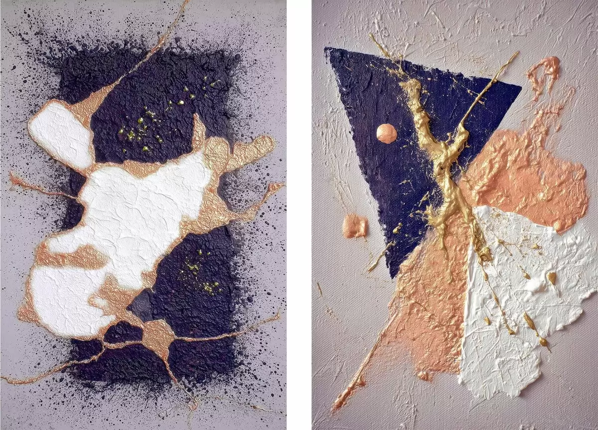 Glezna Abstrakta glezna tumšā krāsu gamā ar spilgti dzelteniem akcentiem Nr m01095