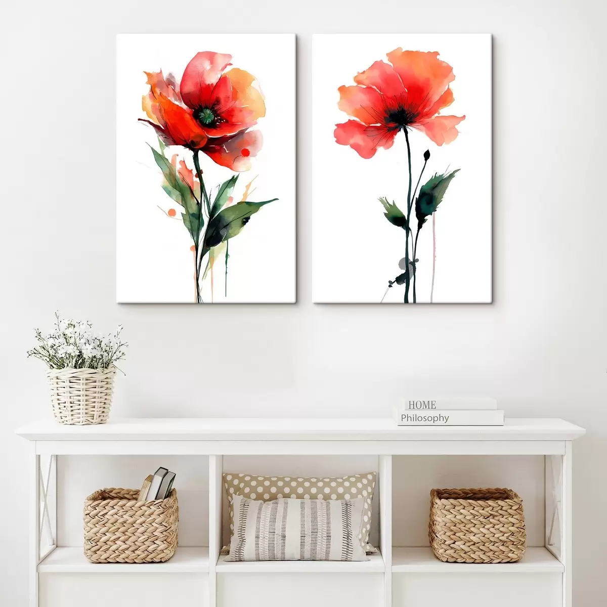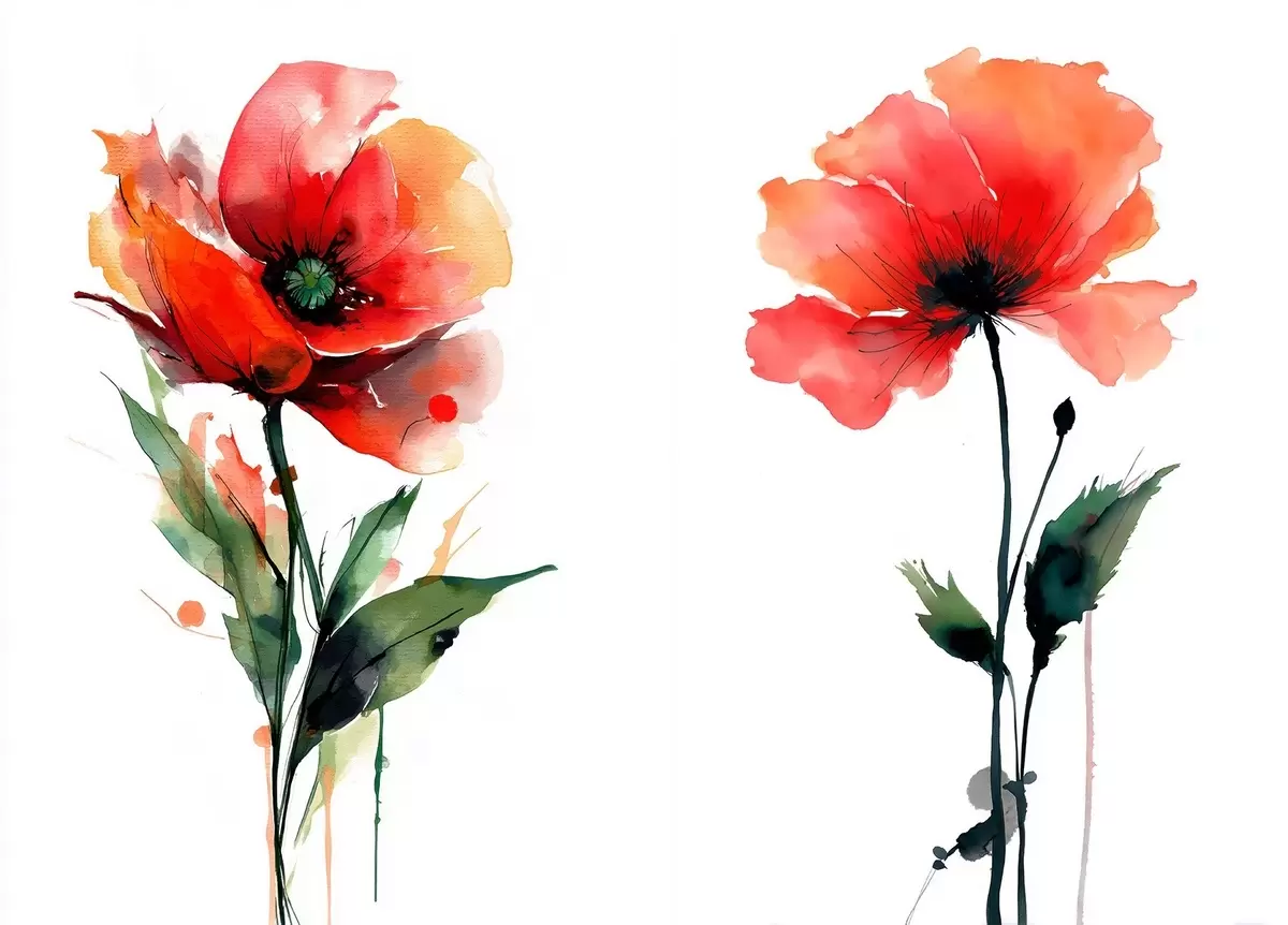 Glezna Kompozīcija ar sarkanām magonēm uz balta fona akvareļa stilā Nr m01100