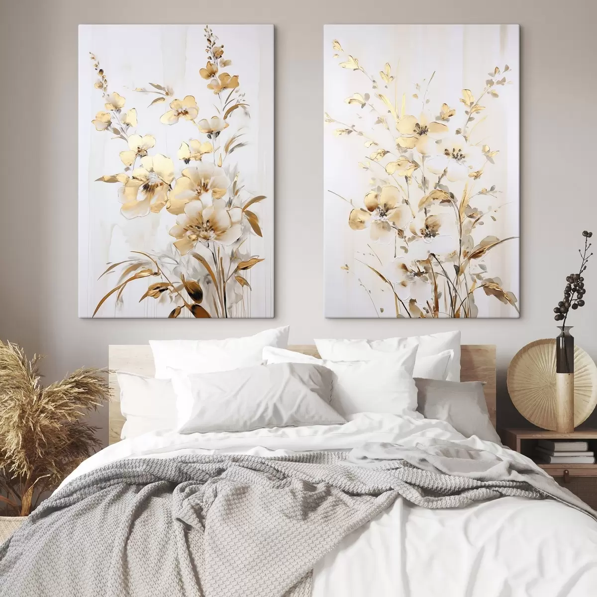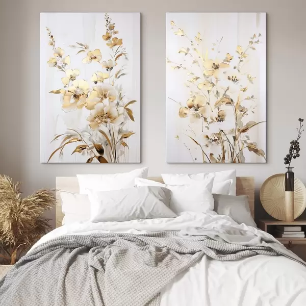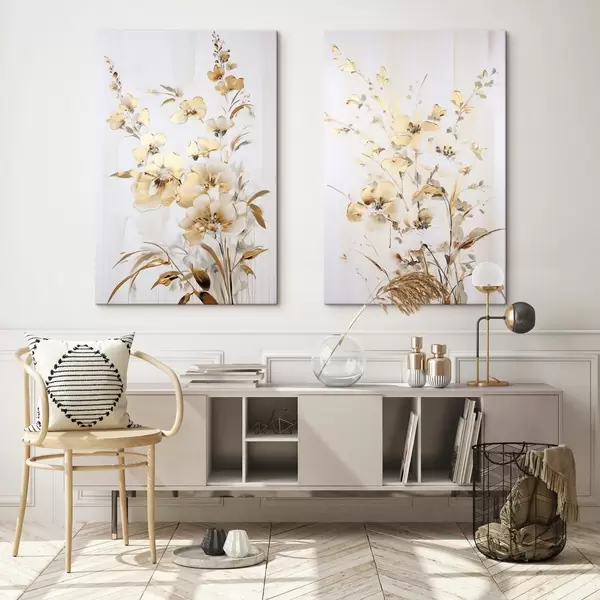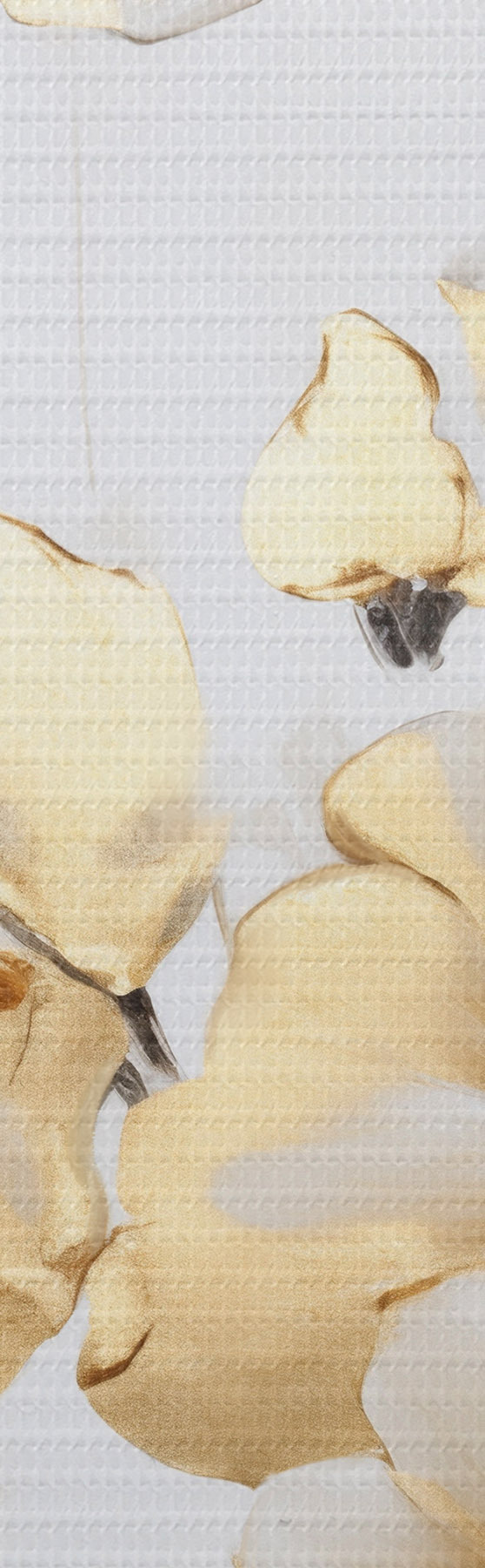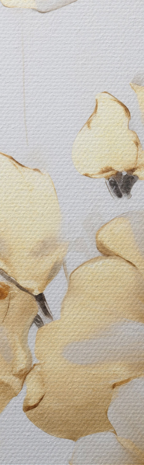Glezna Teksturēti dzelteni ziedi un lapas uz balta fona, ar delikātiem otu triepieniem Nr m01116