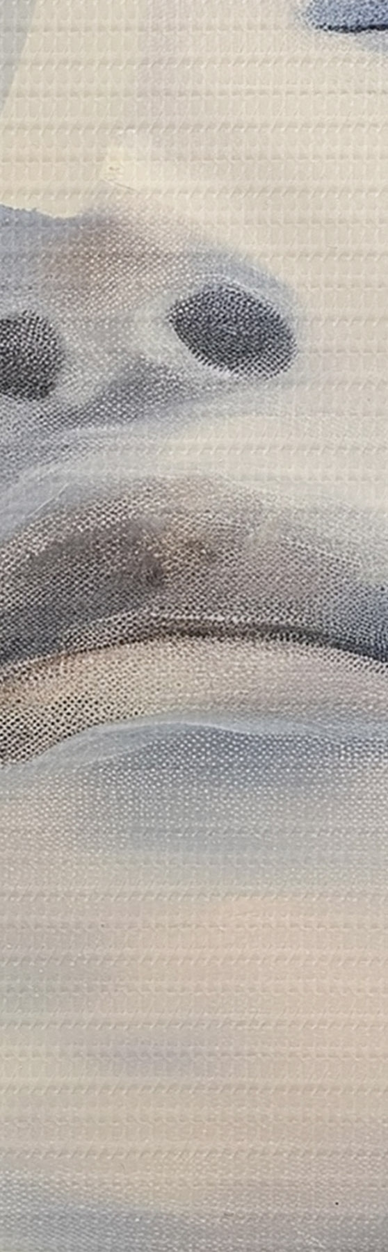 Smalkais diegu pinums uz šī audekla atgādina profesionālu mākslinieku audeklu virsmu.