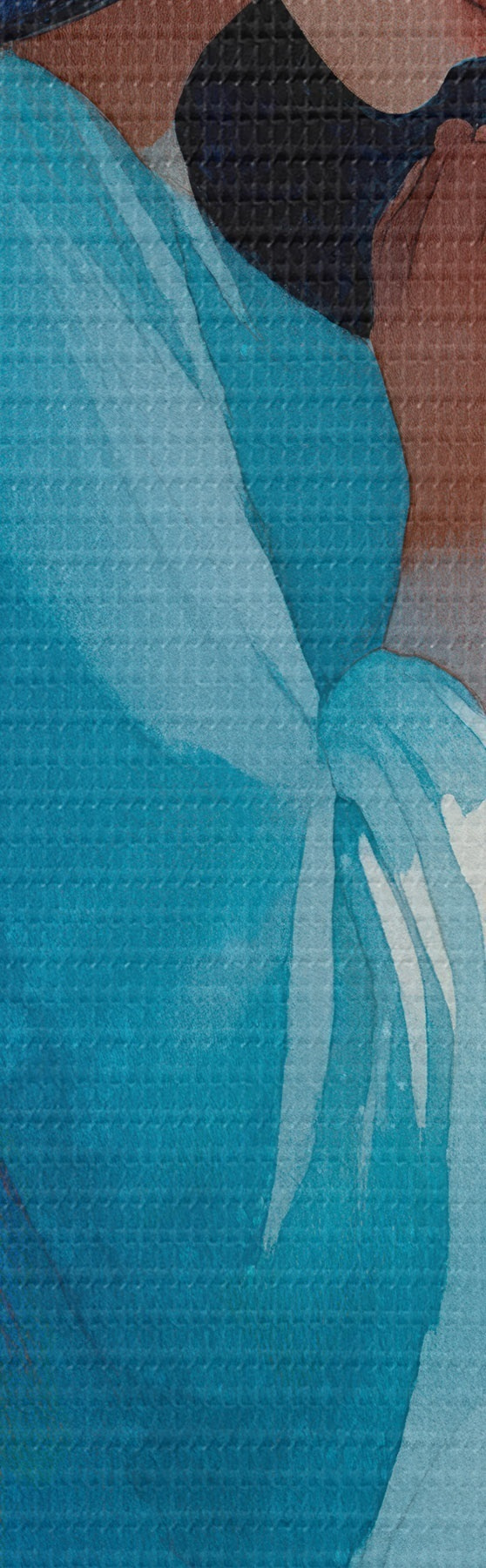 Smalkais diegu pinums uz šī audekla atgādina profesionālu mākslinieku audeklu virsmu.