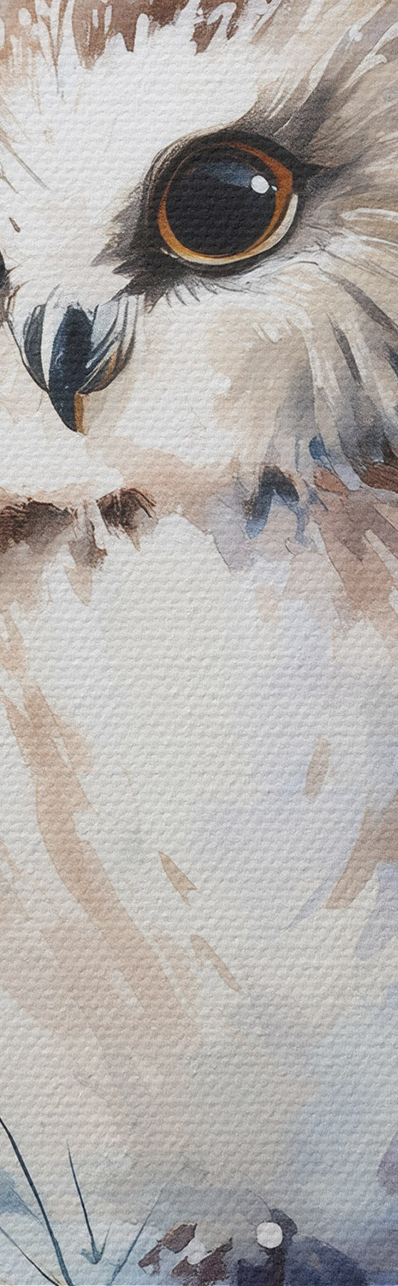 Glezna mīlīga pūce uz sniega klāta priežu zara akvareļa stilā m01168