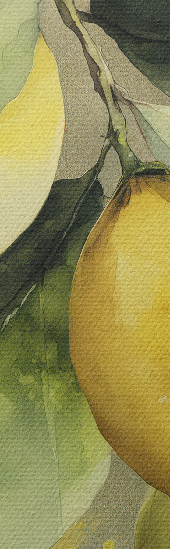 Glezna akvareļa stilā zīmēta zaru ar citroniem Nr m01172
