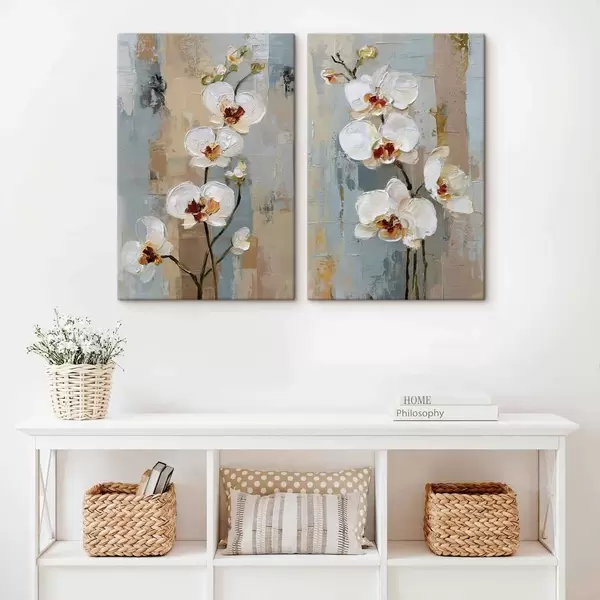Glezna balti orhideju ziedi eļļas gleznas stilā Nr m01175