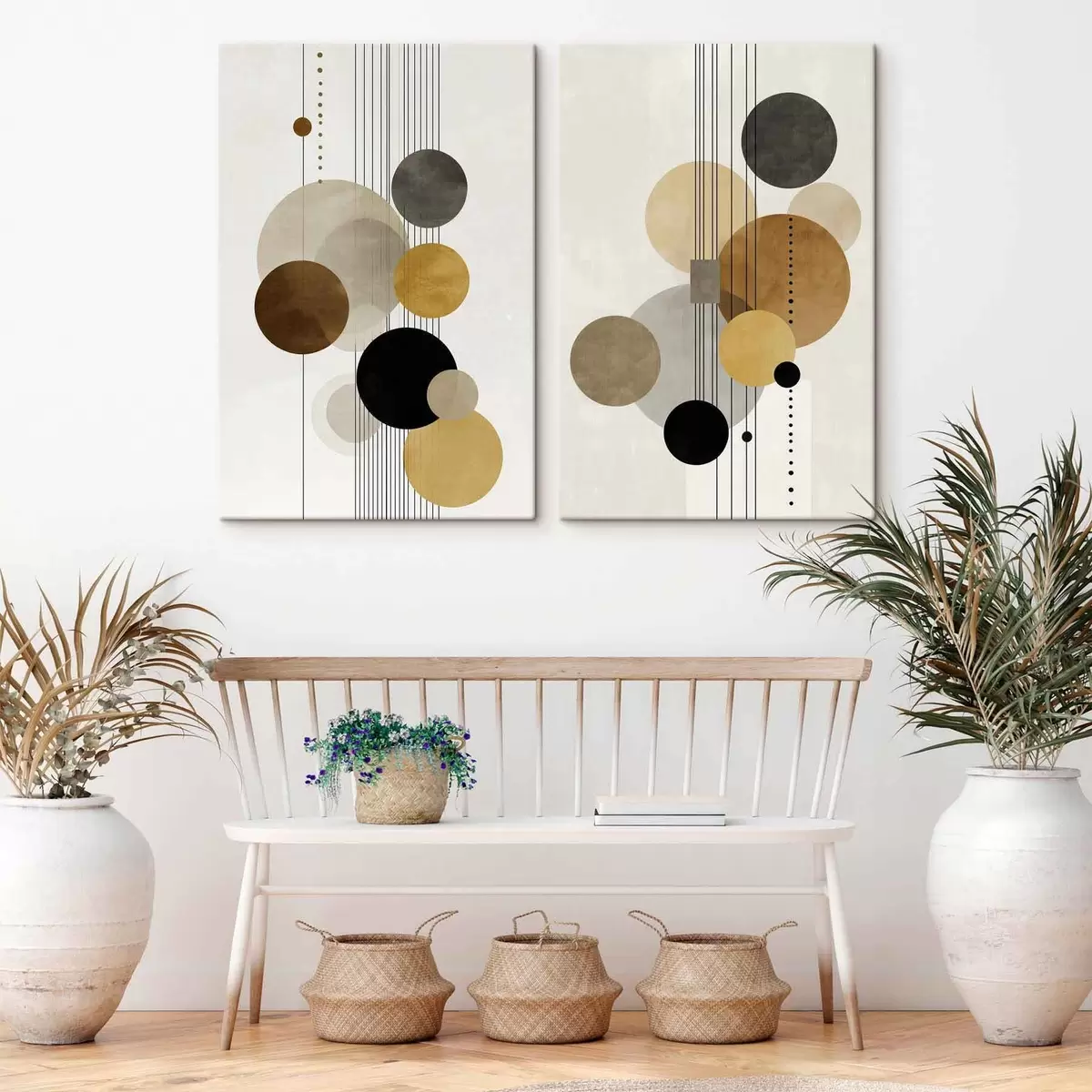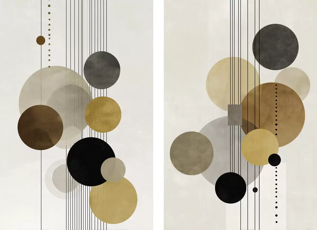 Glezna abstrakcija ar apļiem un līnijām siltās krāsās Nr m01182