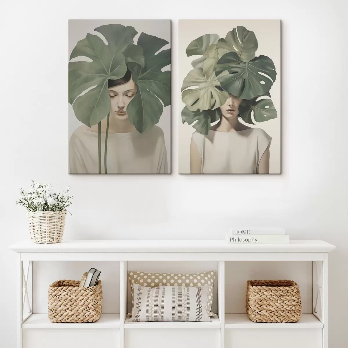 Glezna Meitene ar lapām Nr m01185