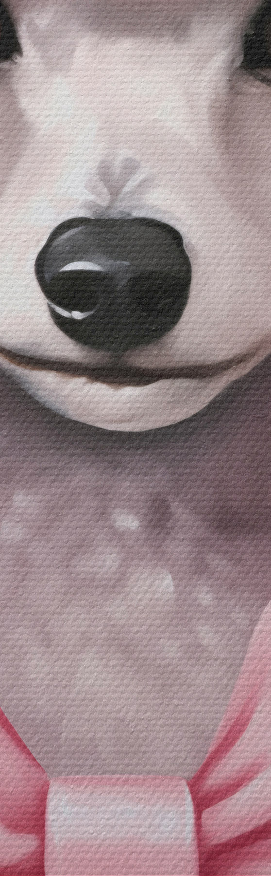 Smalkais diegu pinums uz šī audekla atgādina profesionālu mākslinieku audeklu virsmu.