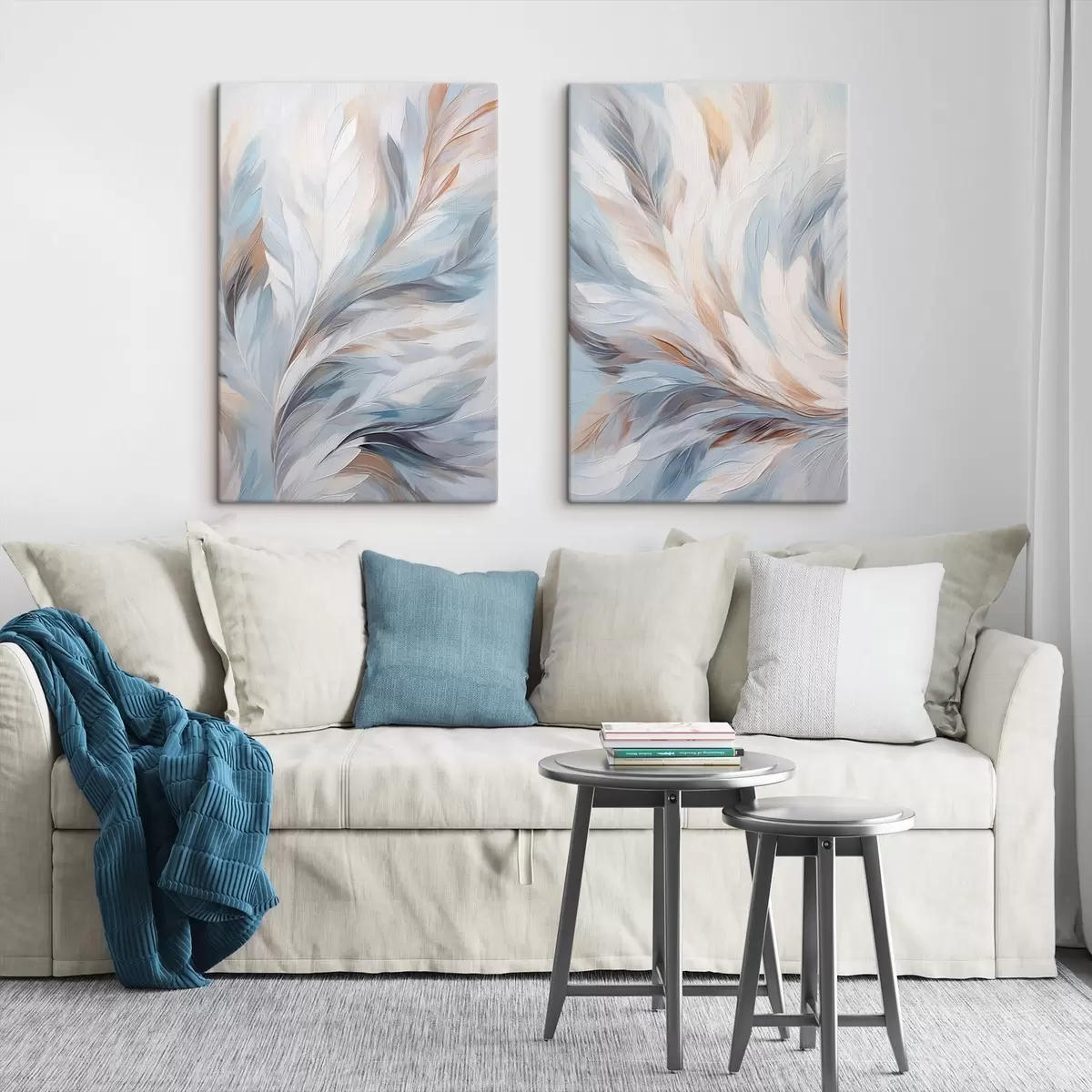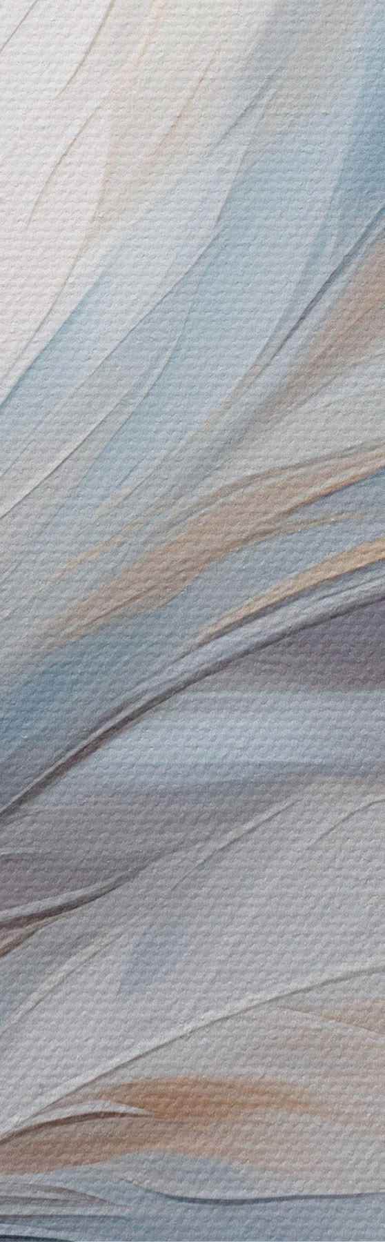 Glezna Abstrakta glezna ar spalvām baltā, zilā un brūnā krāsā, ar maigu, plūstošu faktūru un gaišu fonu. Nr m01234