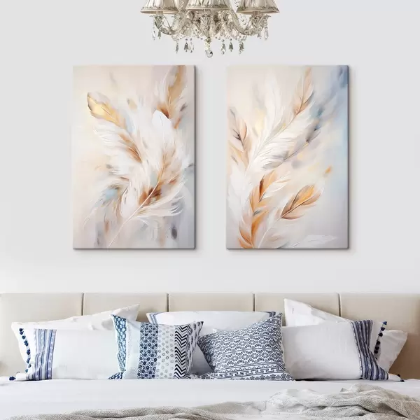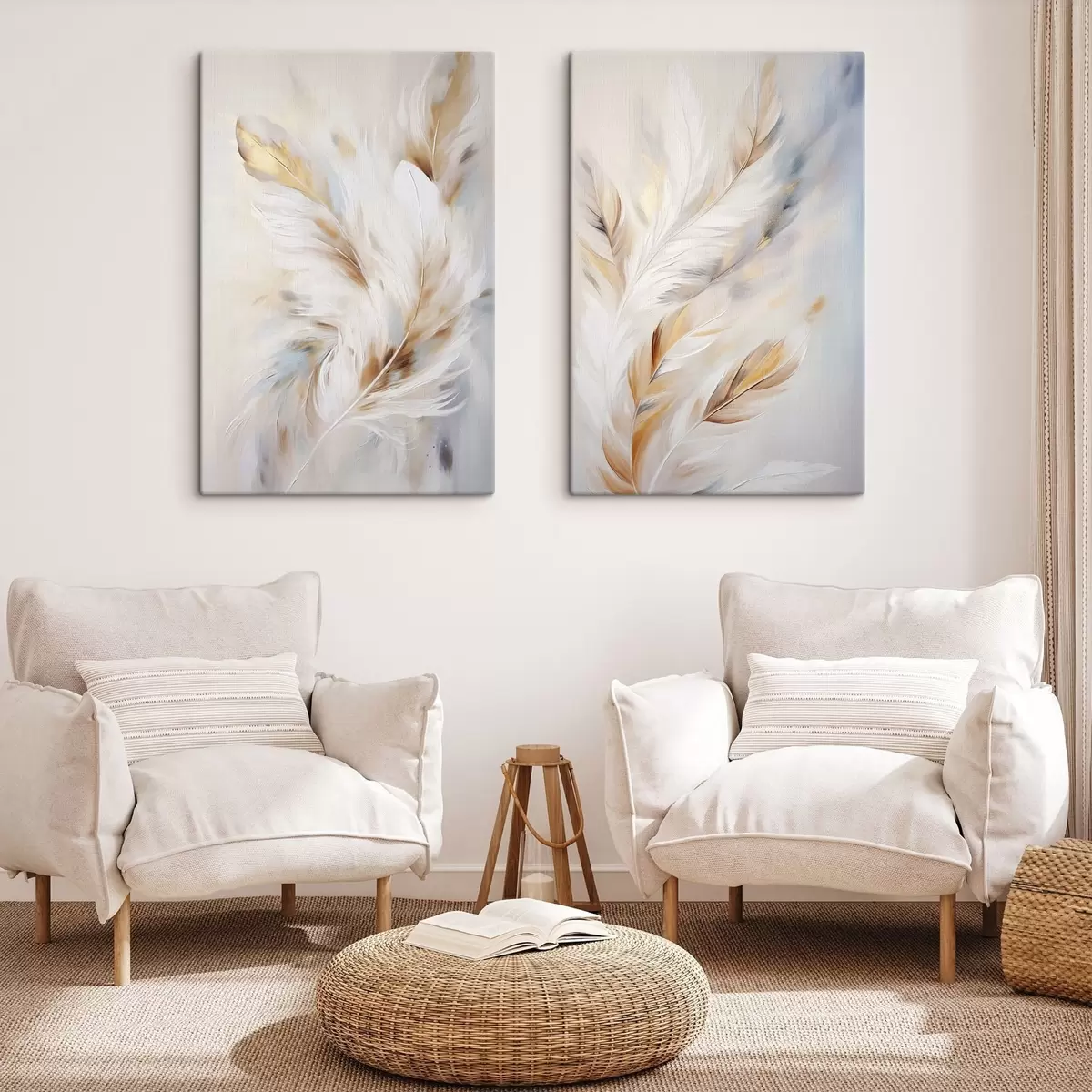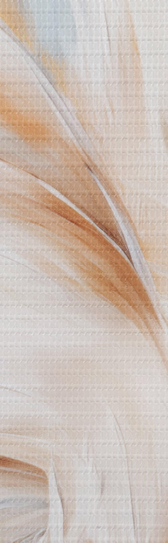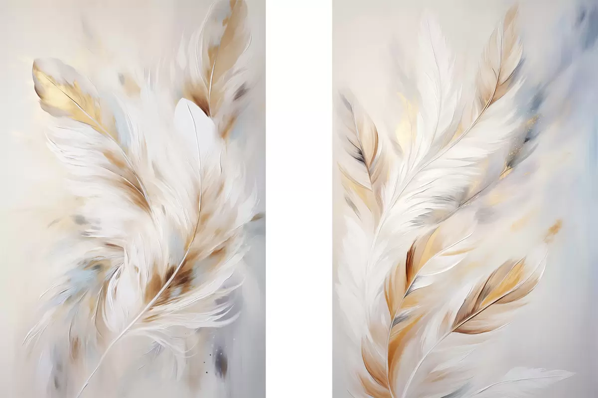 Glezna Lielas, mīkstas spalvas ar balto, dzelteno un brūno toņu maisījumu uz gaiša, abstraktā fona Nr m01247