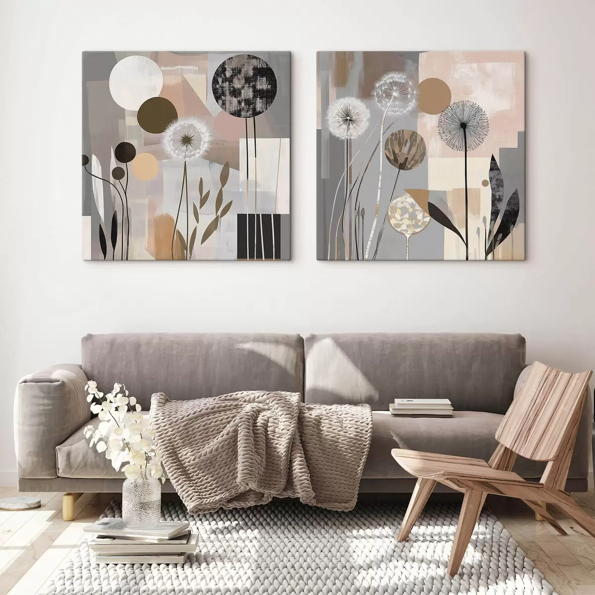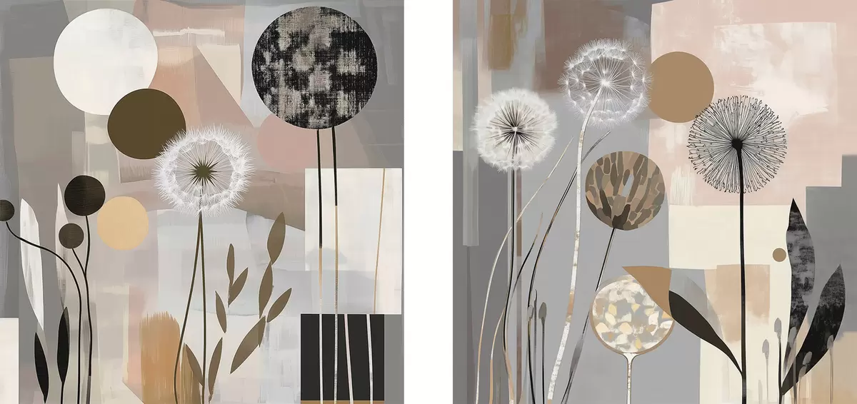 Glezna Abstrakcija ar pienenēm un augiem Nr m01276