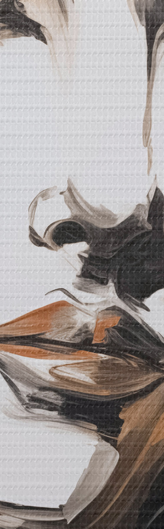 Smalkais diegu pinums uz šī audekla atgādina profesionālu mākslinieku audeklu virsmu.