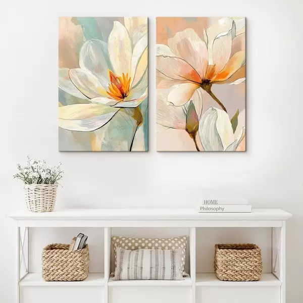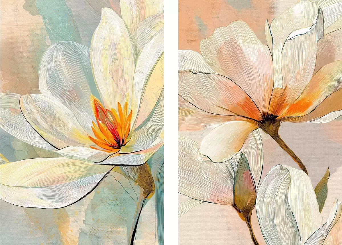 Glezna Magnolijas ar grafiskiem kontūriem modernā mākslas ilustrāciju stilā Nr m30032