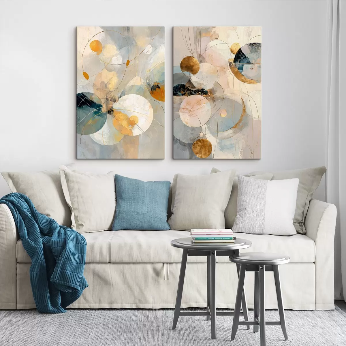 Glezna Dekoratīvā māksla zilo-krēmkrāsas toņos ar maigu gaismas efektu Nr m30039