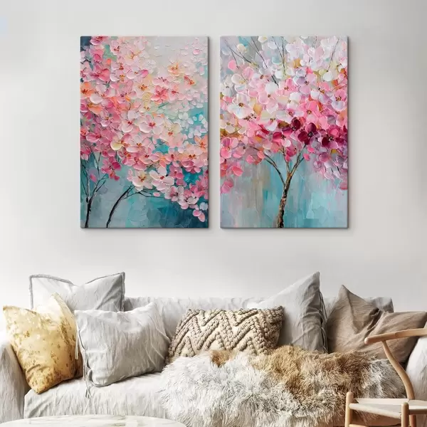 Glezna Ziedošs koks ar rozā ziediem eļļas gleznas stilā Nr m30040