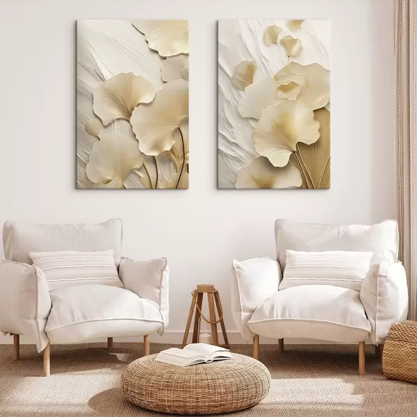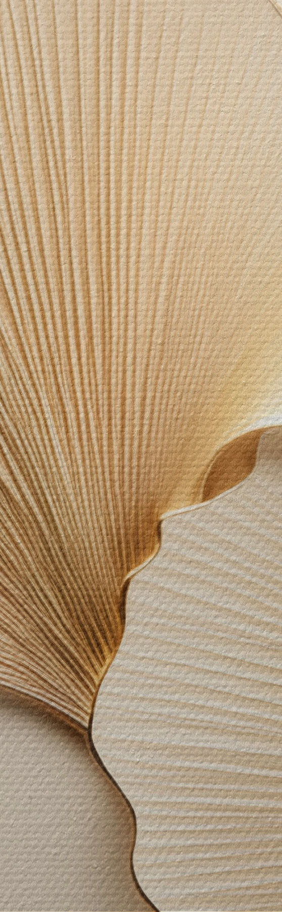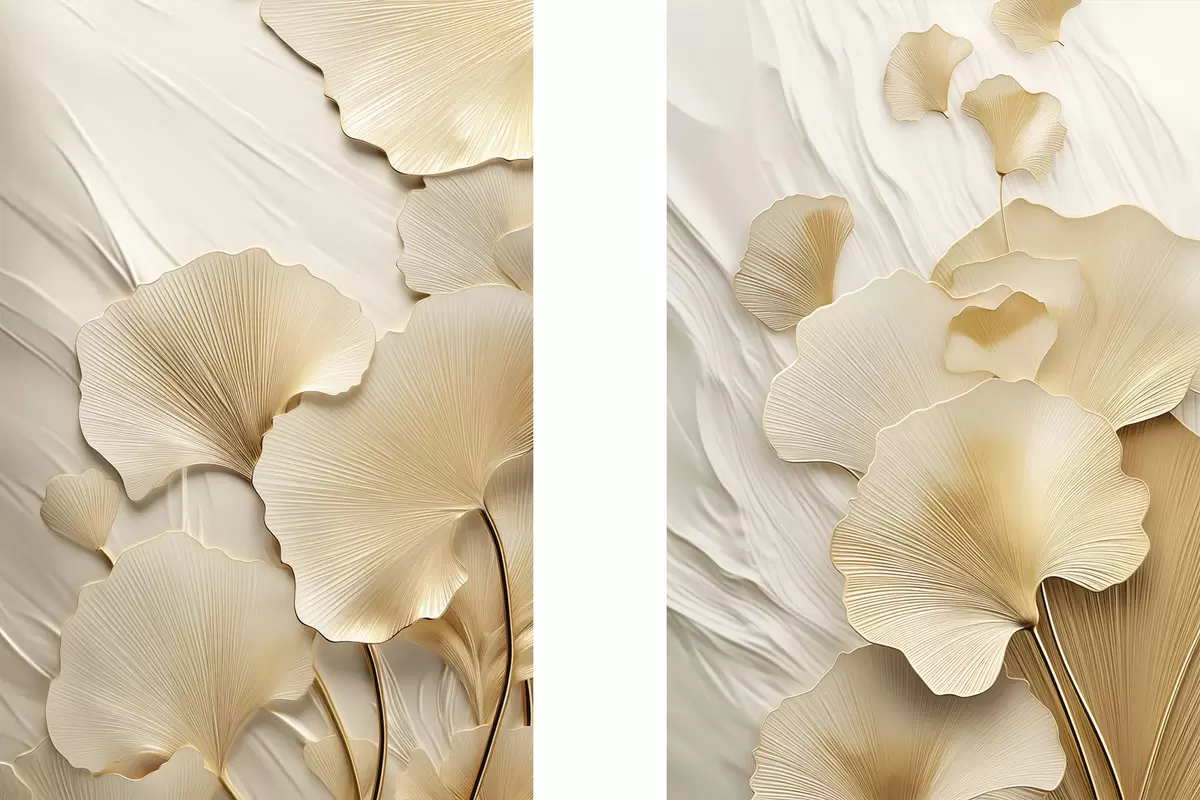 Glezna Ginkgo abstraktas lapas uz teksturēta, gaiša fona, eleganta un abstraktā kompozīcija Nr m30054