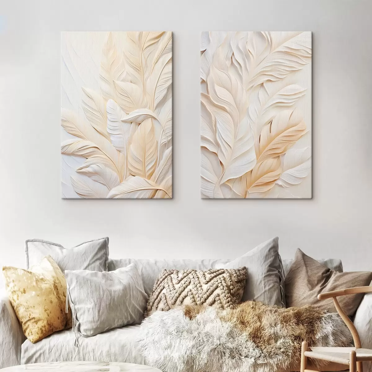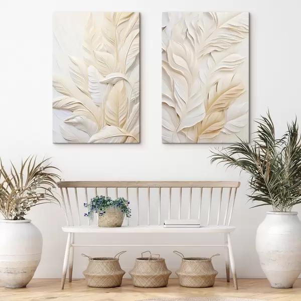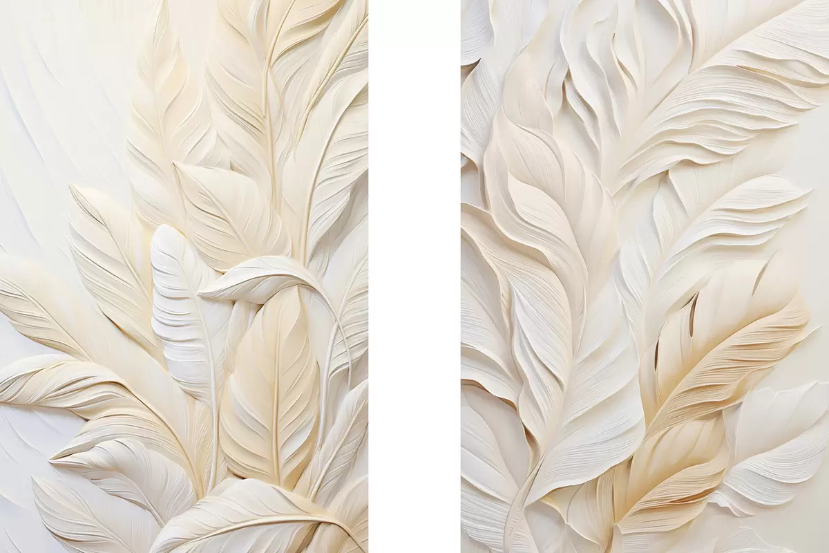 Glezna Krēmkrāsas spalvas, kas pārklājas viena ar otru, ar maigu, gaišu fonu Nr m30062