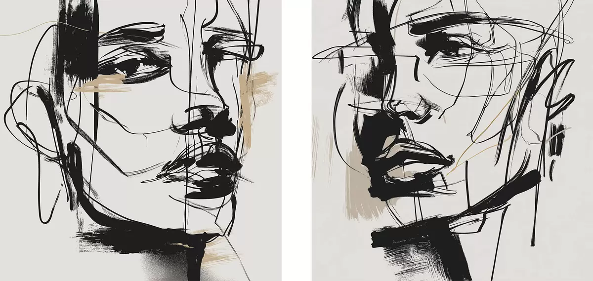 Glezna Minimālistiski vīrieša un sievietes portreti Nr m30066