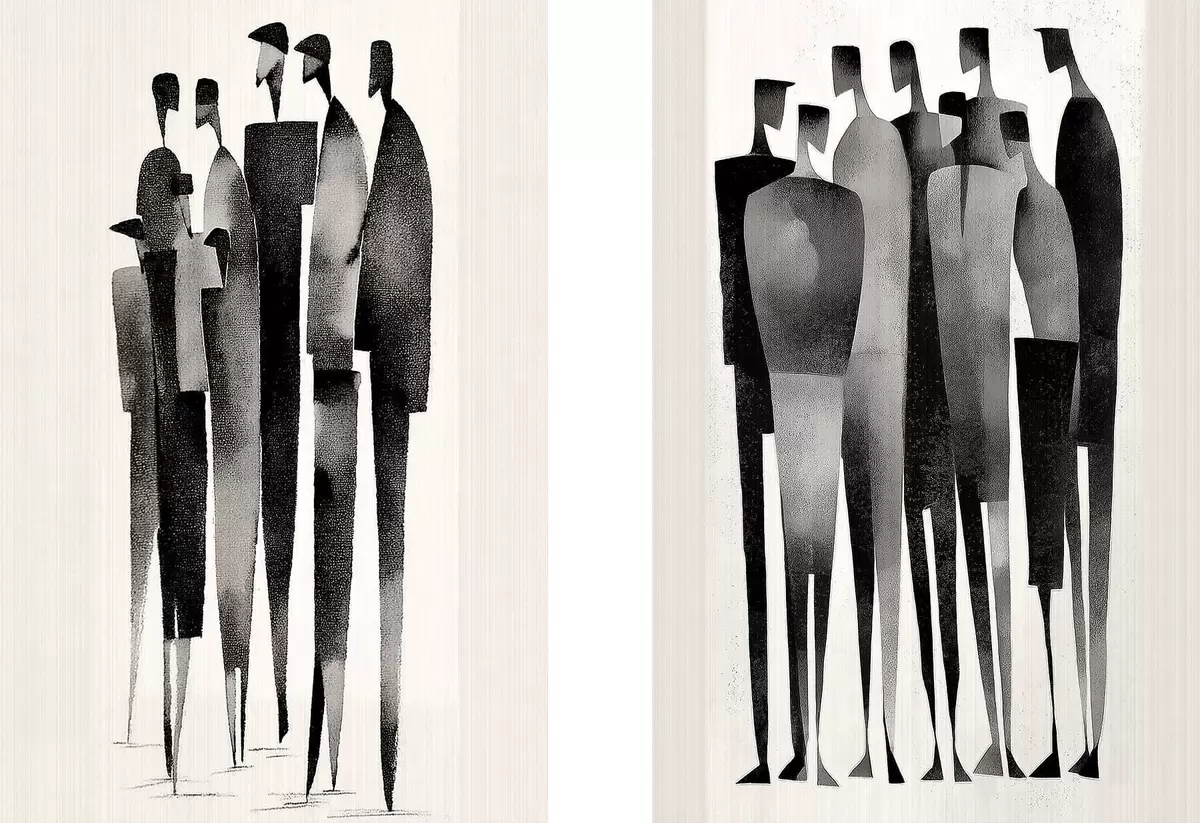 Glezna Melnbaltas abstrakcijas figūras Nr m30085