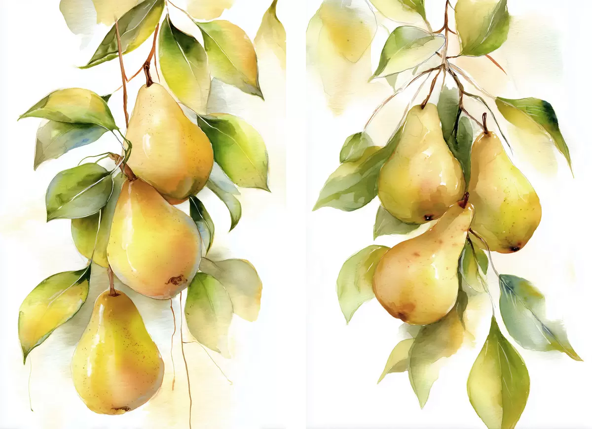 Glezna sulīgi dzelteni bumbieri akvareļa stilā Nr m30088