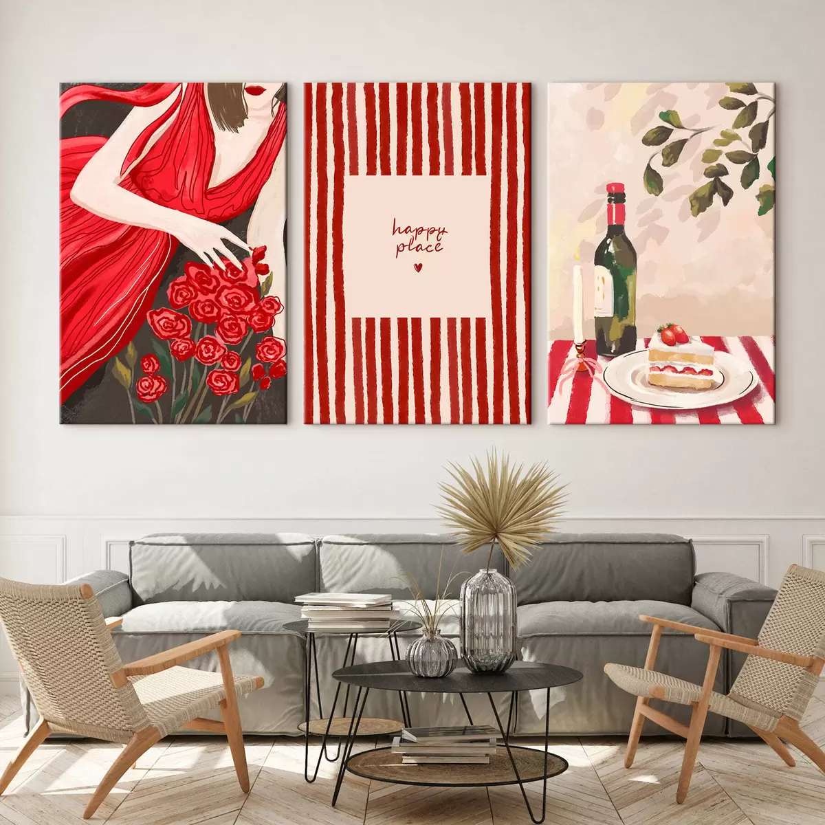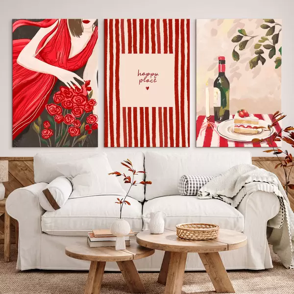 Glezna Sieviete ar rozēm, svītrains plakāts un galds Nr m30099