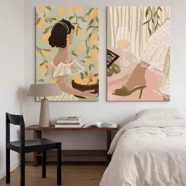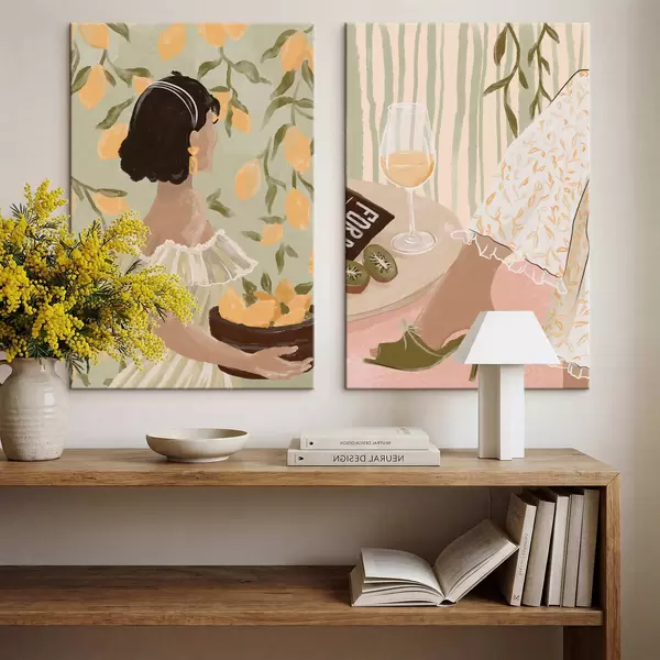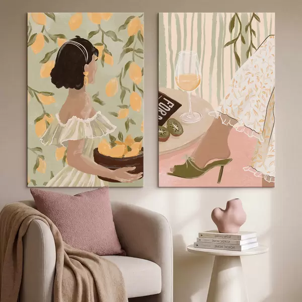 Glezna Sieviete ar citroniem un galda ar glāzi Nr m30104
