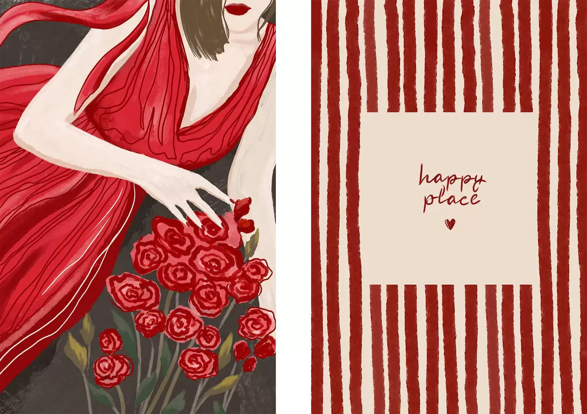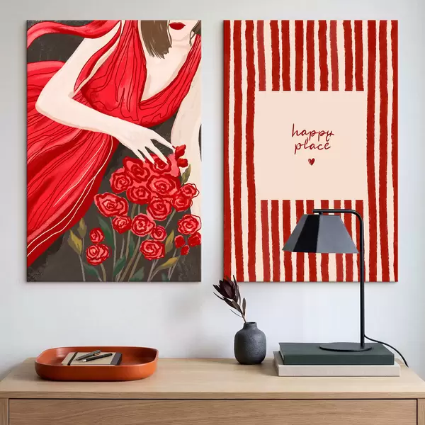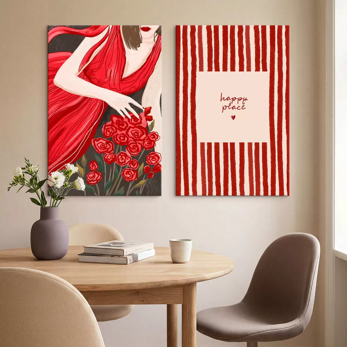 Glezna Sieviete ar rozēm un sarkanu rakstu Nr m30107