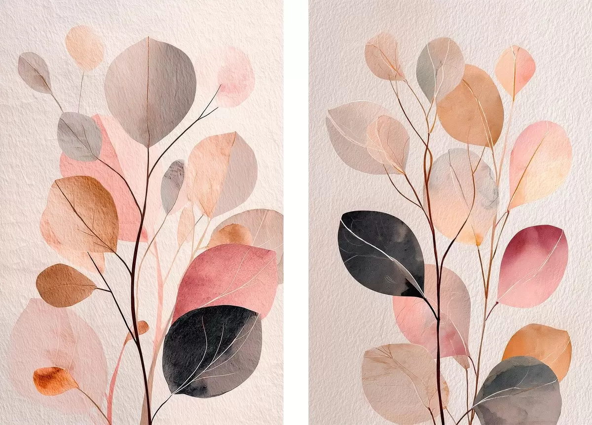 Glezna Abstrakta botāniska kompozīcija divās daļās mūsdienīgā glezniecības stilā Nr m30135