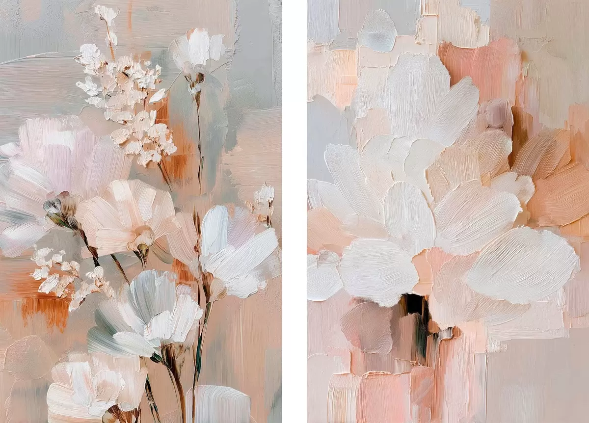 Glezna Abstrakta gaismas ziedu kompozīcija ar izteiksmīgiem triepieniem mūsdienu mākslas stilā Nr m30137