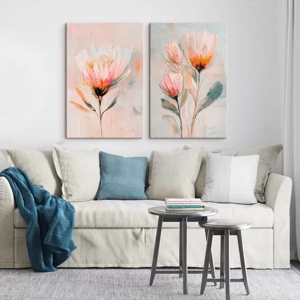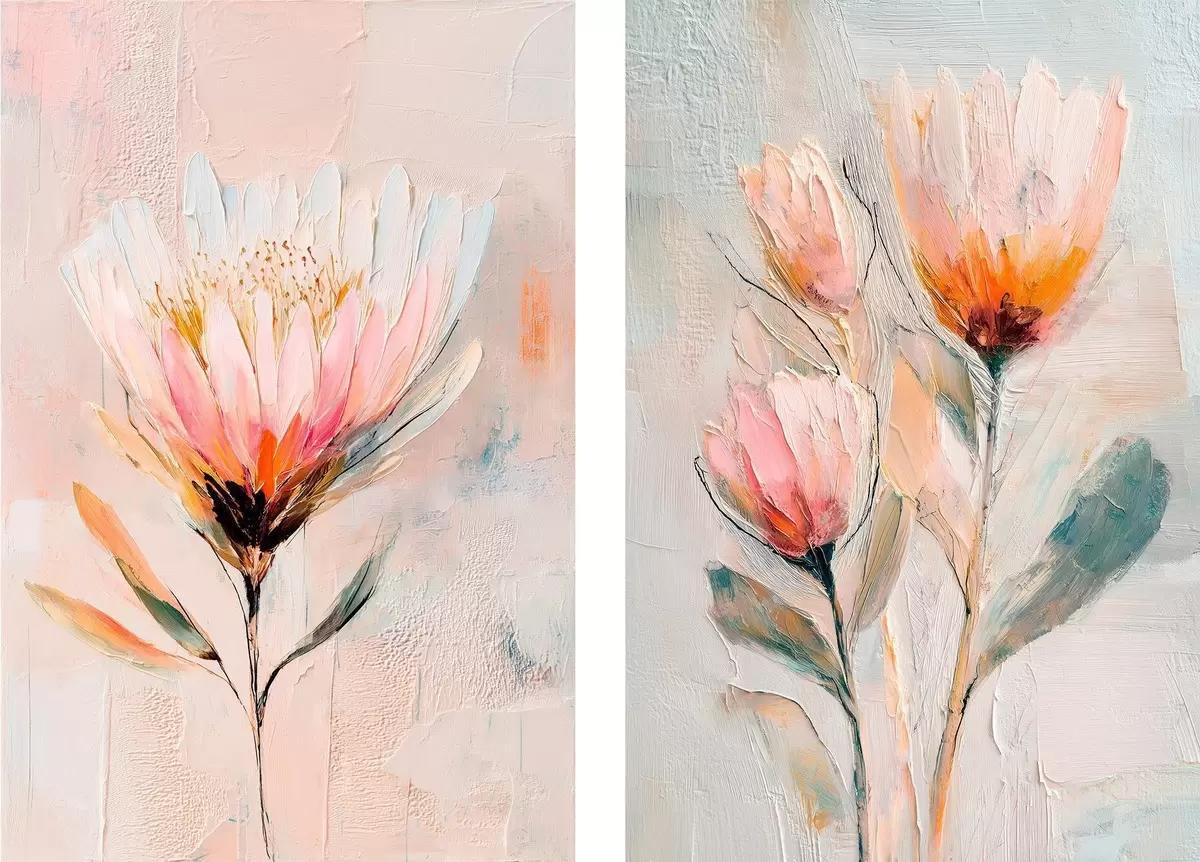 Glezna Ziedu kompozīcija pasteļtoņos ar apjomīgiem triepieniem mūsdienu mākslas stilā Nr m30140
