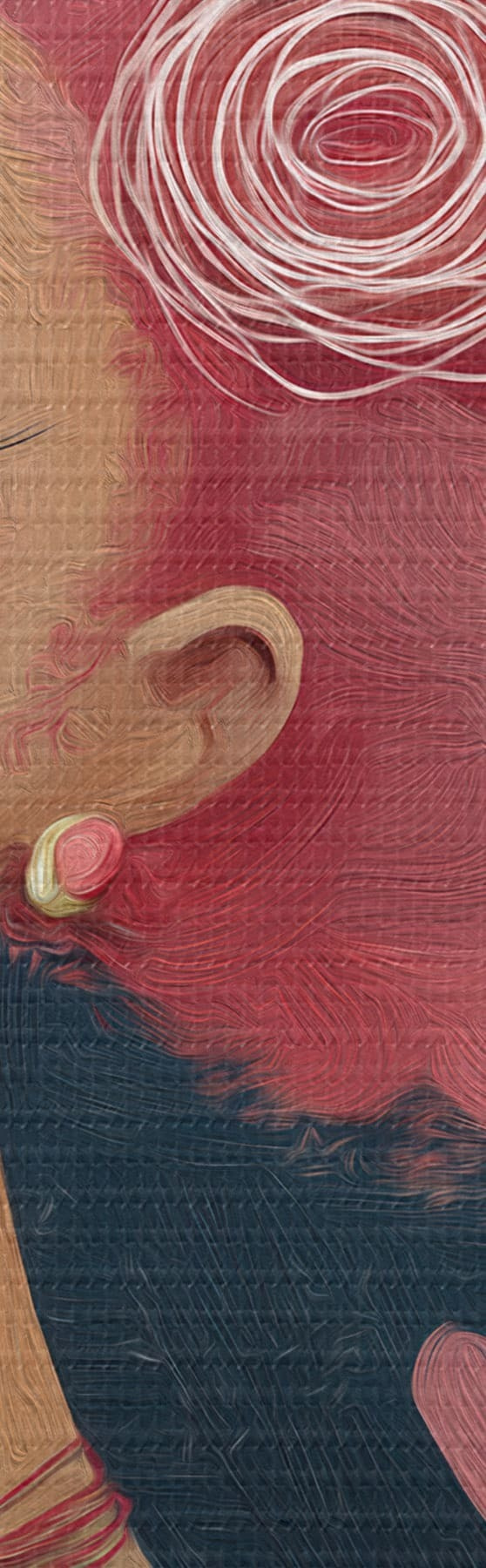 Smalkais diegu pinums uz šī audekla atgādina profesionālu mākslinieku audeklu virsmu.