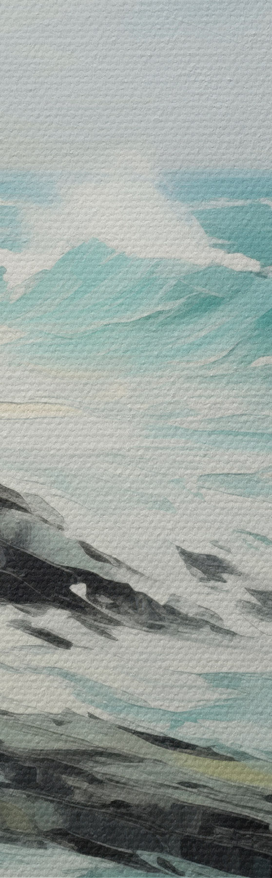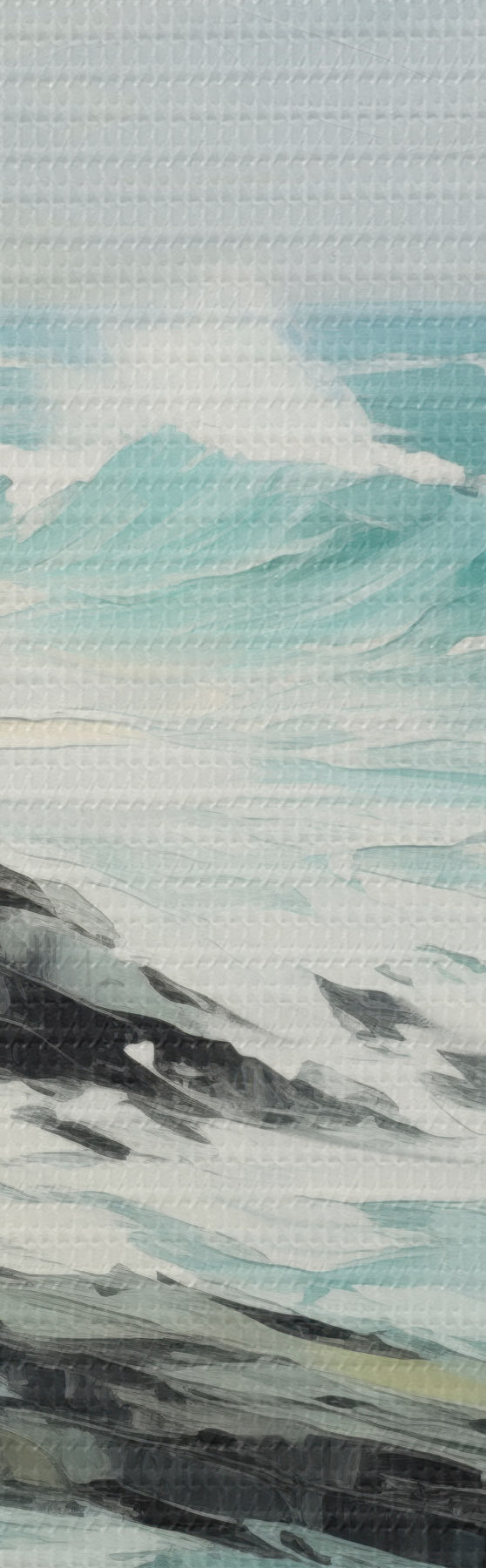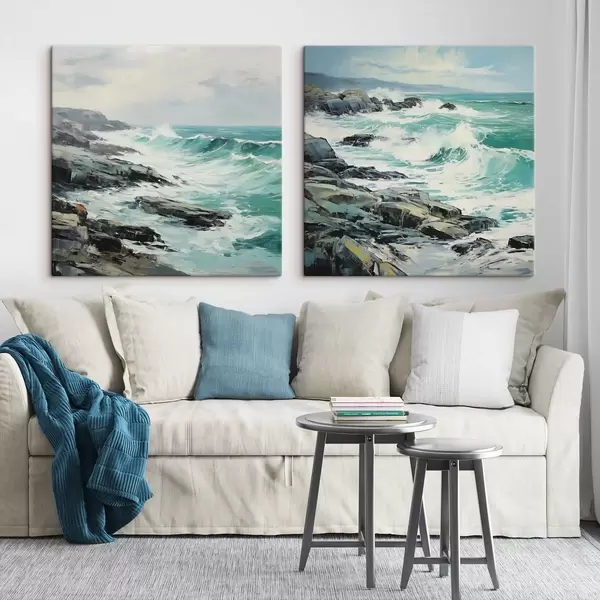 Glezna Akmenskrastu ainava ar viļņiem zem apmākušām debesīm, glezniecības stils Nr m30198